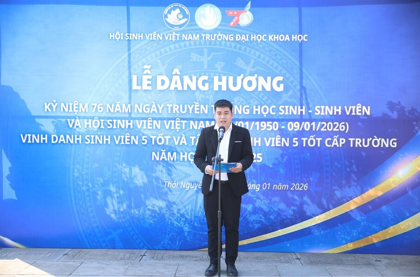 Chiều ngày 7/1, tại Khu Di tích lịch sử Quốc gia Đại đội 915, Hội Sinh viên Việt Nam Trường Đại học Khoa học đã tổ chức chương trình Kỷ niệm 76 năm ngày Truyền thống Học sinh sinh viên Việt Nam (09/01/1950 – 09/01/2026) và vinh danh sinh viên 5 Tốt cấp Trường năm học 2024 - 2025.